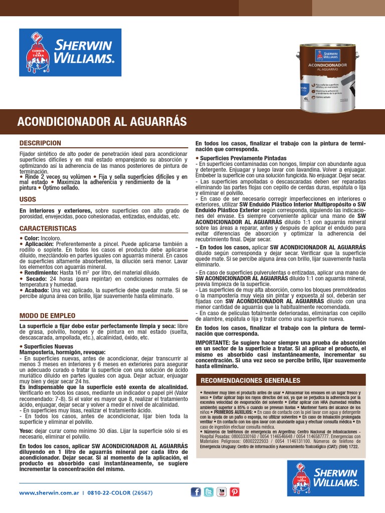 SHERWIN WILLIAMS ACONDICIONADOR AL AGUARRAS.pdf | Pintar | Agua